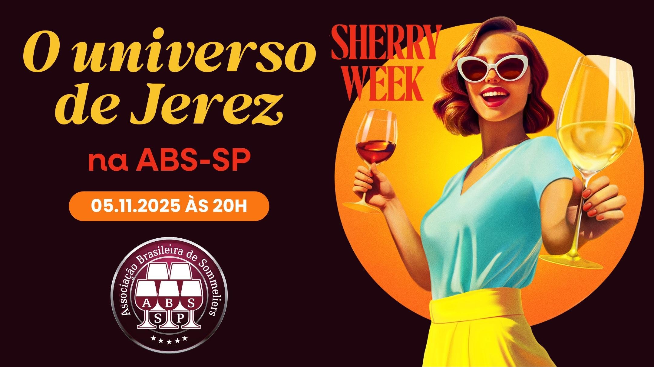 O Universo de Jerez – Degustação Oficial Sherry Week 2025 – ABS-SP A Associação Brasileira de Sommeliers – São Paulo (ABS-SP) realiza uma degustação técnica especial durante a International Sherry Week 2025, explorando os diferentes estilos e personalidades dos vinhos de Jerez. O evento será conduzido por Dr. Arthur Azevedo, educador certificado oficialmente pelo Consejo Regulador de Jerez, e José Eduardo, sommelier especialista em Jerez.