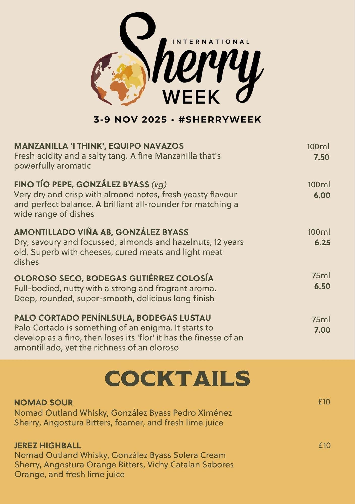 You can also explore our special Sherry Week wine list, featuring five different Sherries by the glass and two exclusive Sherry Week cocktails.