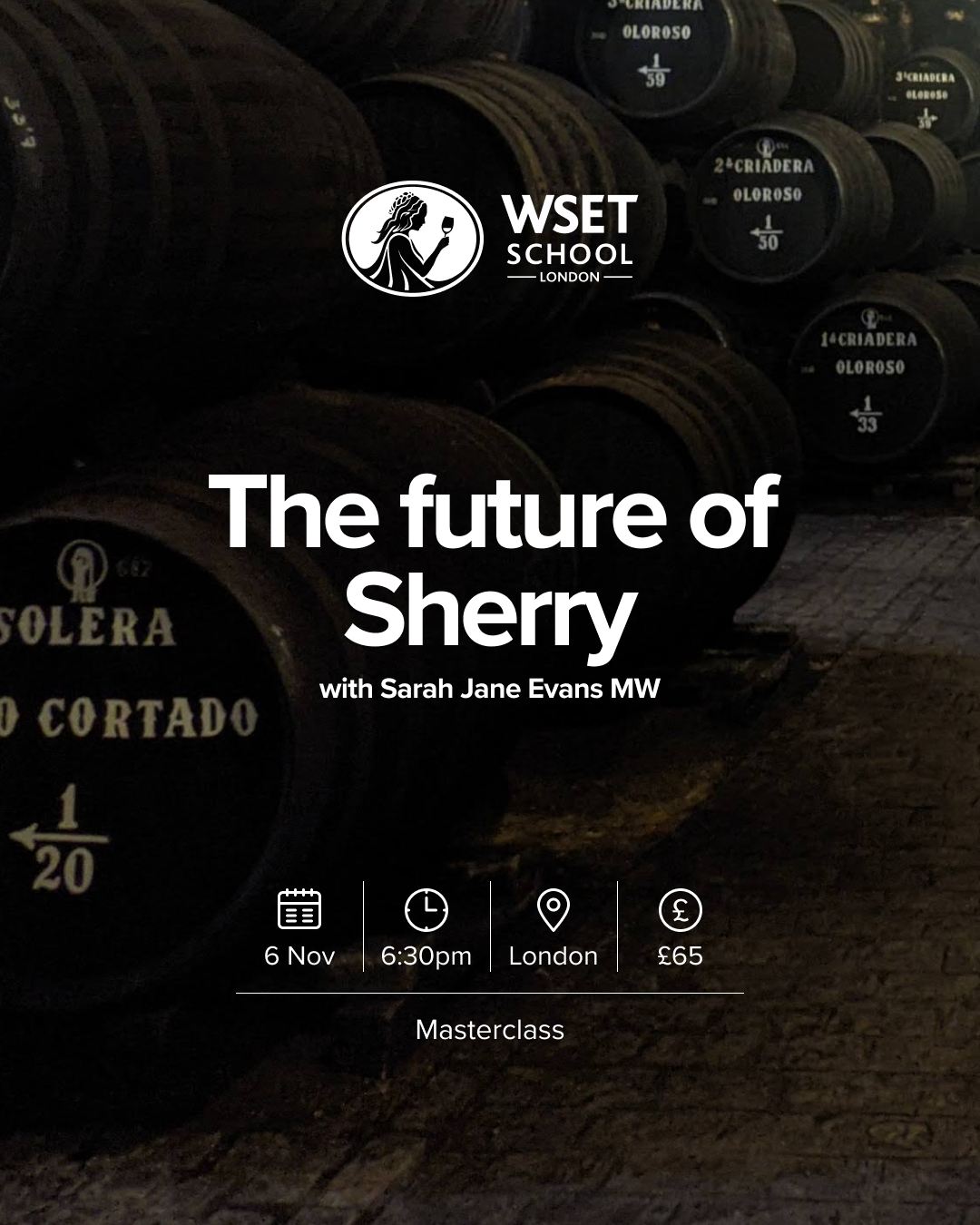 To celebrate Sherry Week, join us at this masterclass to discuss what’s hot and what’s new in the Sherry zone. Including sparkling, unfortified and very old styles, Certified Sherry Educator and Master of Wine Sarah Jane Evans has selected nine of her favourite Sherries to tell the story.